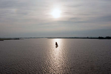 Sailing on the IJsselmeer in the Netherlands at sunset
