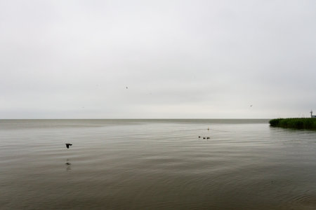 Landscape at the Curonian Lagoon on a gloomy day