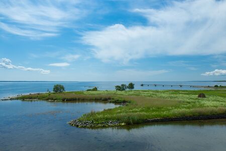 Wetland at Beijershamn with the Oland Bridge in the background, on Southwestern Oland, Sweden.