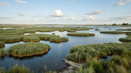 Panoramic view of canals at Razim lake in spring, Dobrogea, Romania.