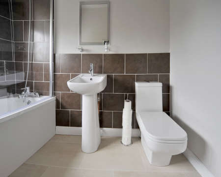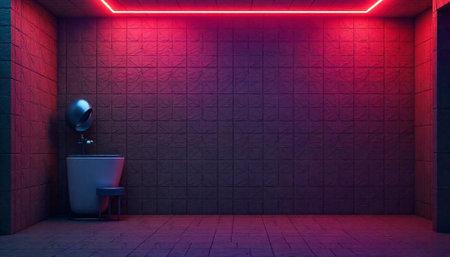 Home Decoration Series : Modern bathroom decoration with high ceiling and cool white lights. Bathroom interior with a simple style design. Toilet of a minimalist style house.