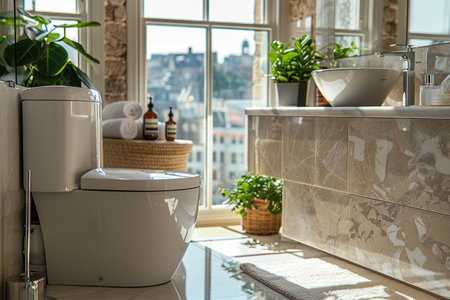 still life of bathroom scene, serene bathroom setting featuring gentle lighting
