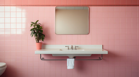 3d rendering of modern bathroom with pink tile wall and white washbasin
