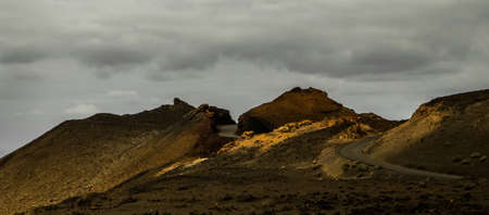 beautiful mountain landscape with volcanoes in Timanfaya National Park in Lanzarote, Canary Islands