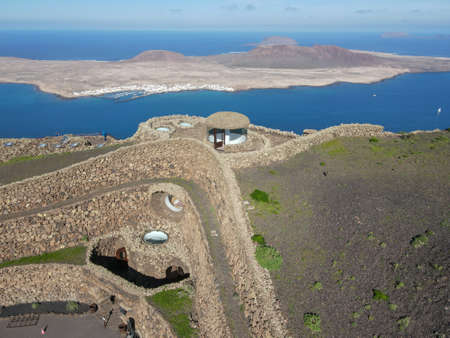 Drone view at the coast of Mirador del Rio on Lanzarote in Spain