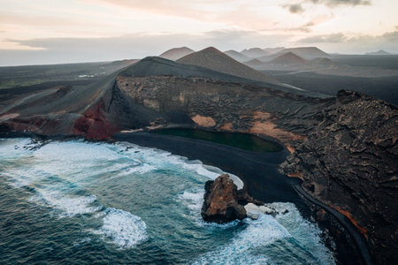 Landscape at the coast of El Golfo on Lanzarote in Canary islands, Spain