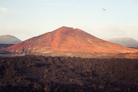 Volcano with a lava field in Timanfaya National Park on Lanzarote, the Canary Islands