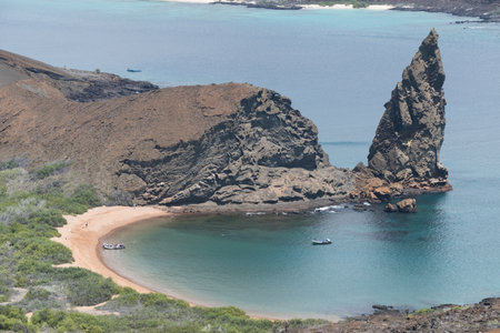 View of pinnacle Rock and surroundings in Bartolome island, Galapagos, Ecuador