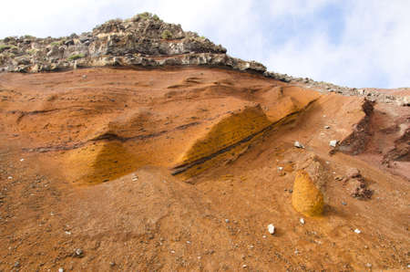 Hill with volcanic tuff in its lower part and basaltic rock in the upper part. Las Nieves Natural Park. La Palma. Canary Islands. Spain.