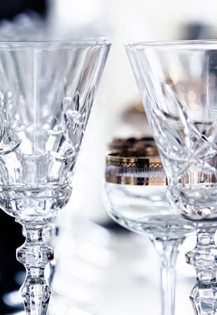Crystal glasses as luxury table glassware and bohemian glass design, home decor and event decorations