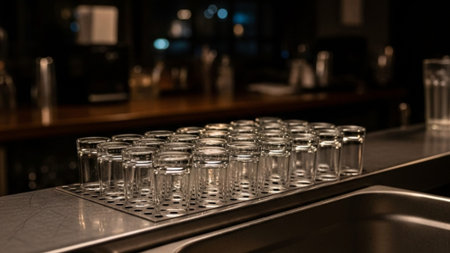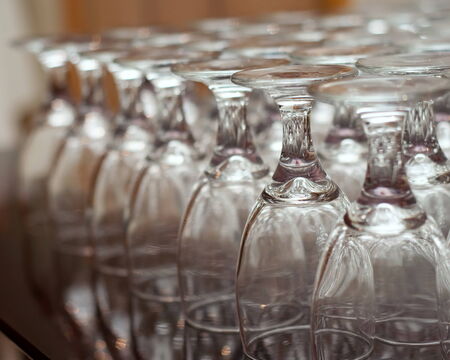 Drinking Glasses cleaned and perfectly lined up ready for service