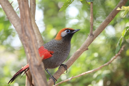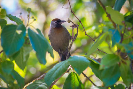 beautiful chestnut-crowned laughingthrush Garrulax erythrocephlus in Thai forest