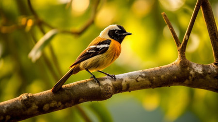 Yellow headed blackbird perching on branch, resting in tranquil scene generated by artificial intelligence
