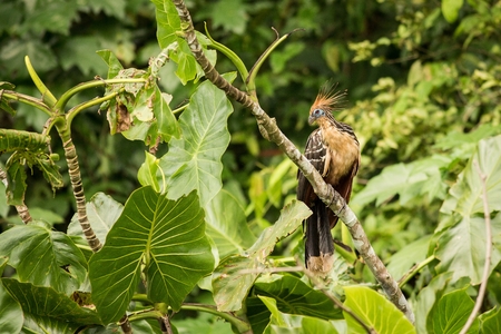 Hoatzin, Opisthocomus hoazin, often occurs in the Amazon Basin, River Napo, Yasuni National Park, Ecuador