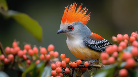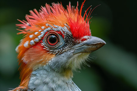 Depicting a close up of a bird with red hair, high quality, high resolution