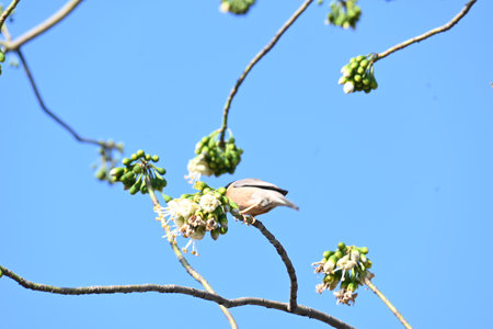 Brahminy starling or brahminy myna sitting on White Silk Cotton Tree. This bird is sucking the nectar of the flower of the White Silk Cotton Tree.