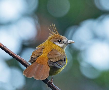 Beautiful bird in nature, Yellow-crested Bulbul (Pycnonotus goiavier)