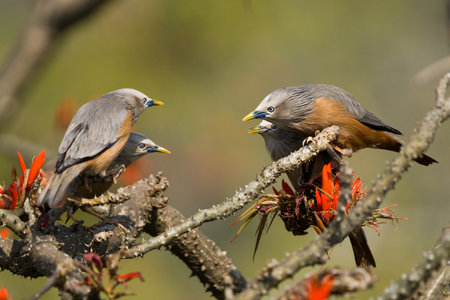 A shot of Chestnut tailed starlings on fire Satchari national park, Sylhet, Bangladesh