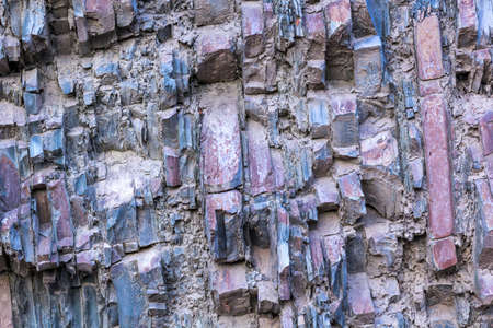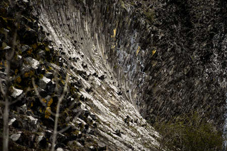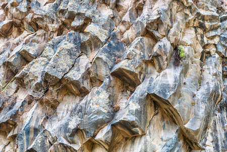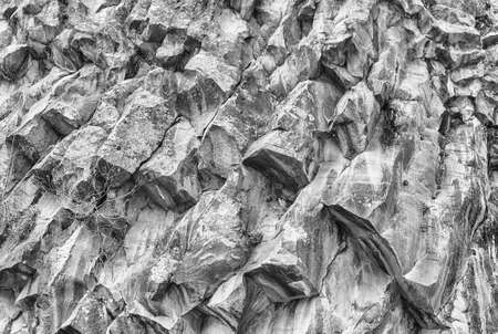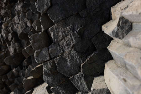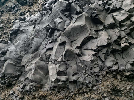 Natural stone texture. Basalt lava formations like columns. Icelandic typical natural background. Volcanic Basalt Coloumn Formations in Iceland