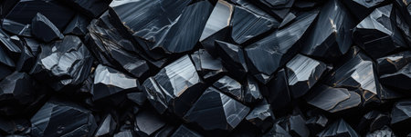 Close-up of a dark, heavy heap of varied coal, highlighting intricate details and rough edges. AI generative.