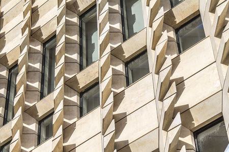Detail of the facade of a modern building made of stone.