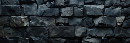 Panorama of black stone wall texture background. Black stone wall texture