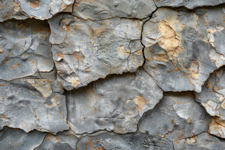 Close-up of a weathered stone texture showing signs of erosion and natural weathering. AI generated.