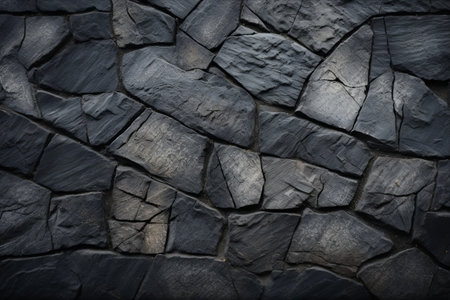 Close up of black stone wall texture. Natural background and texture.