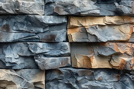 Textured blue stone wall in close-up, revealing rugged beauty and intricate architectural detail. Ai Generated.