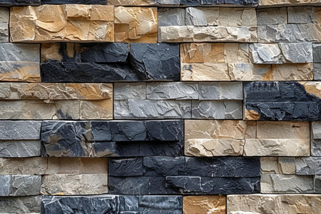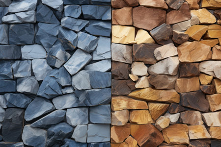 Close-up view of a natural stone wall showcasing a detailed texture with varying colors, primarily gray and brown. the rugged, uneven bricks provide a rustic, aesthetic appeal perfect for background design, architecture, and construction materials inspiration. Generative AI