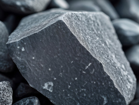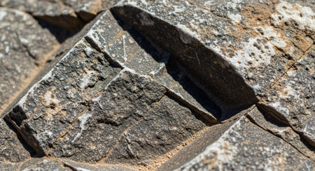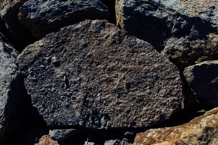 Macro shot of rough volcanic rock texture with sharp edges and a dark, rugged appearance