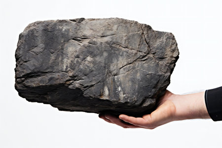 Rock in hand isolated on a white background.