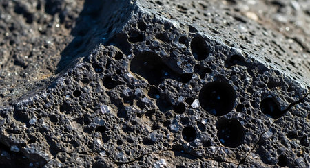 Close-up of a dark porous volcanic rock with rough texture