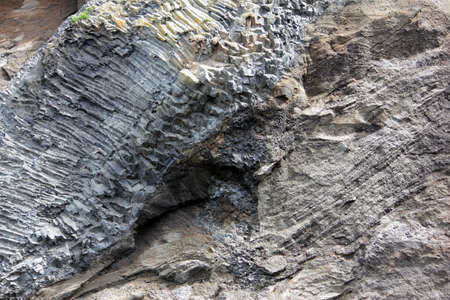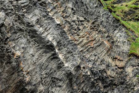 Natural stone texture. Basalt lava formations like columns. Icelandic typical natural background. Volcanic Basalt Coloumn Formations in Iceland