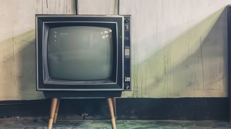 Old TV on grunge wall background. Retro style. Photo in old color image style