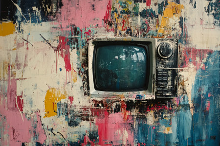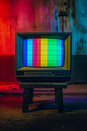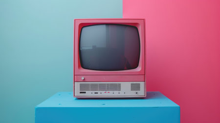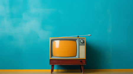 Retro TV on Colorful Background - Vintage Television and Pop Art Aesthetics in Stock Photography