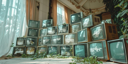 Vintage Televisions Stack Retro Technology and Nostalgia.