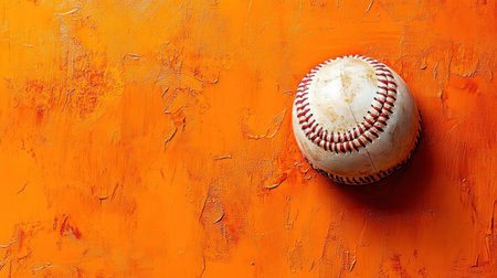 A solitary vintage baseball rests on a bright orange textured background, embodying the energy and tradition of the sport, perfect for dynamic visuals.