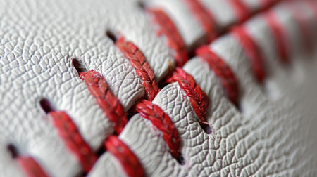 Generative AI, Baseball leather ball close up, macro photo of stiches and seam