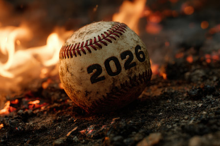 Baseball with 2026 Amidst Fiery Embers and Burning Ground