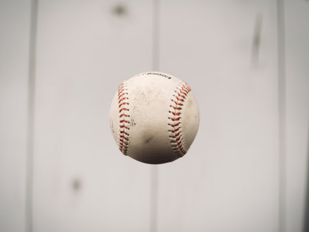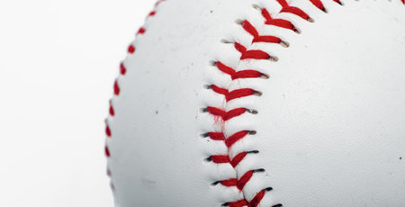 Close-up of a baseball on a plain background, providing space for copy, ideal for sports-themed banners.