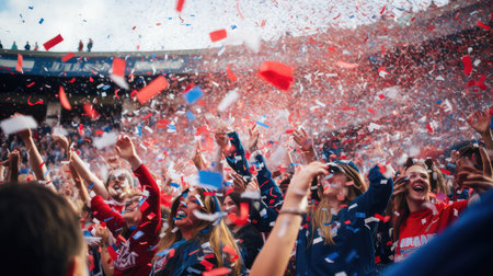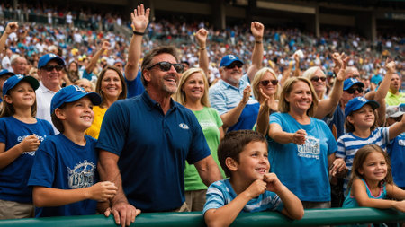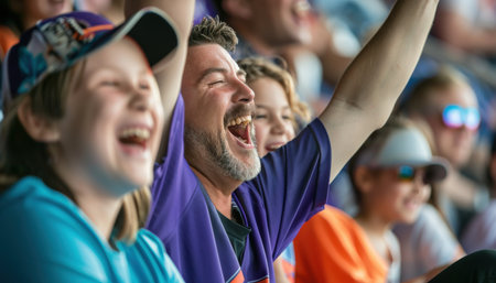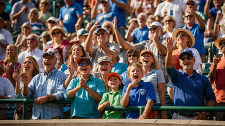 With adrenaline coursing through their veins, the crowd of sports fans unleashes a cacophony of cheers and applause, their fervor unmatched as they exuberantly cheer for their favorite team, willing them to seize glory on the field of play.