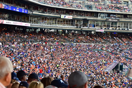 Blurred crowd of spectators on a stadium tribune at a sporting event