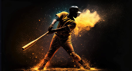 A Powerful Baseball Player Unleashes A Fierce Swing, Creating Sporting Art. Concept Powerful Baseball Swing, Fierce Sporting Art, Athletic Excellence, Dynamic Sports Photography.