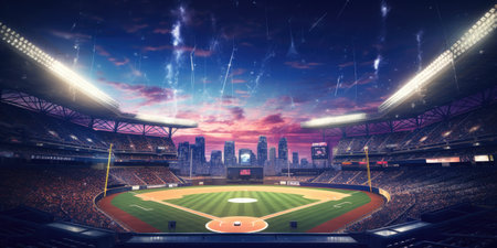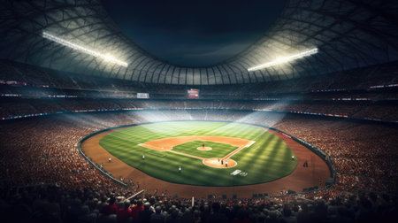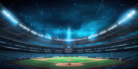 Generative AI, Professional baseball grand stadium, modern public sport building, arena in night
