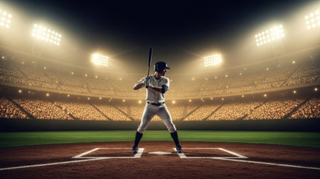 Baseball player in baseball arena stadium with copy space. Generative AI