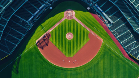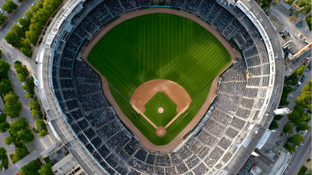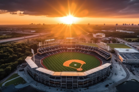 Aerial view of a baseball stadium at sunset. Aerial view of a baseball stadium at sunset. generative ai