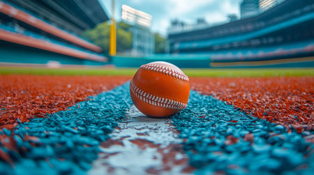 A baseball rests on a vibrant sports field, ready for action. The scene captures the anticipation and energy of a game.