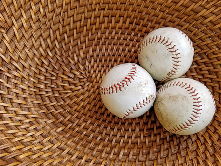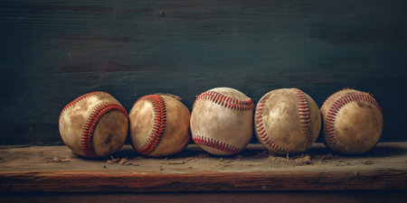 Generative AI, Rough and rugged texture of old baseball balls close up on vintage background