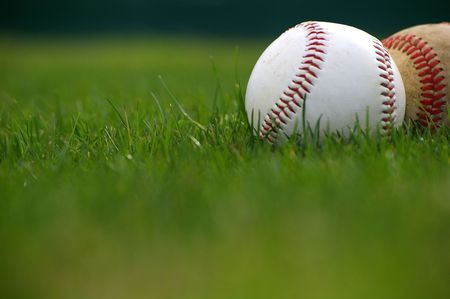 Baseball, grass and ball on baseball field for sport training, fitness and team sports outdoor. Softball, balls and softball field before match for health, performance and physical exercise challenge